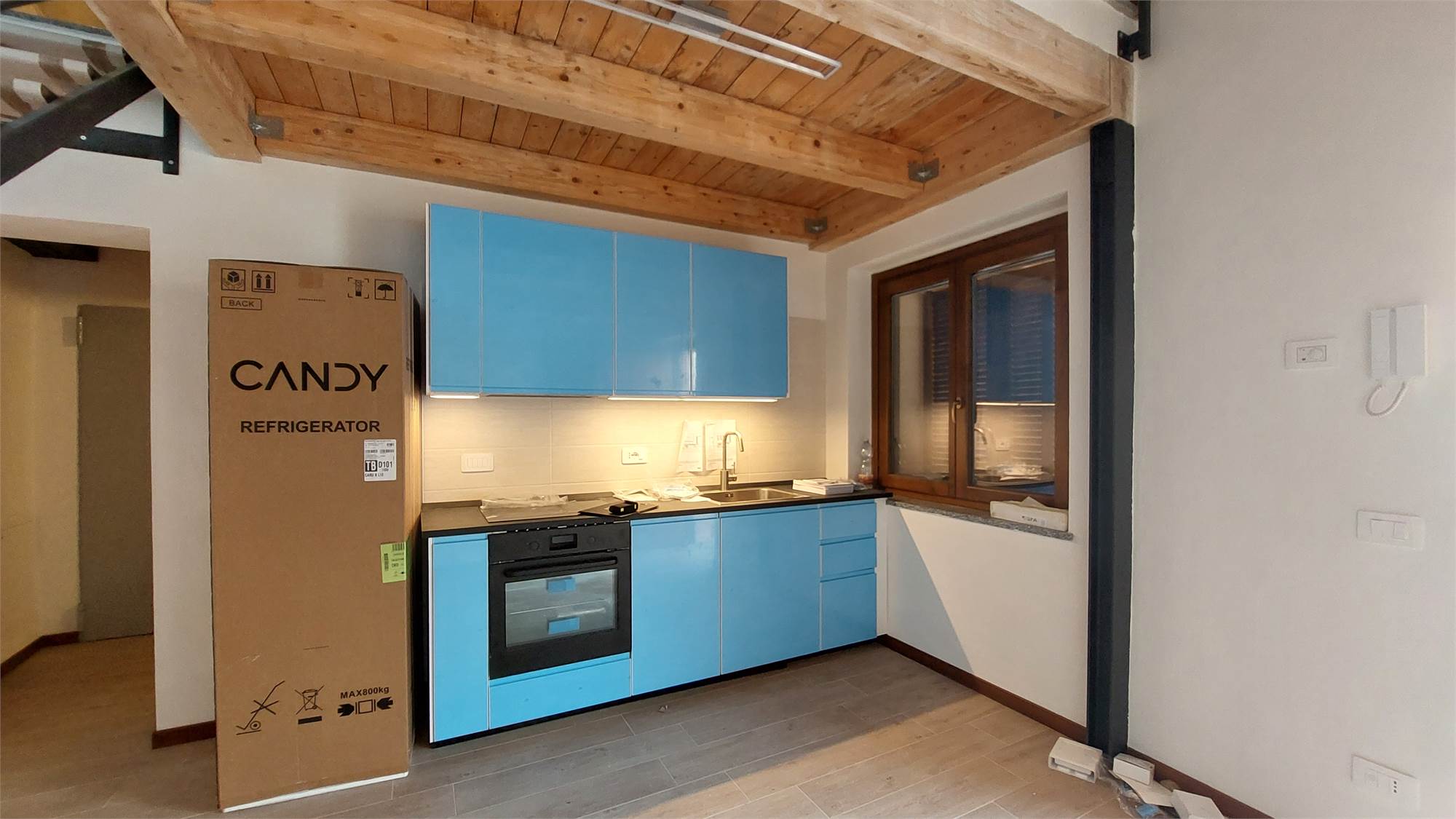 All'interno di un piccolo cortile, nel centro storico, proponiamo nuovo appartamento al piano terreno composto da: Ingresso, tinello con angolo cottura, disimpegno e bagno; moderna scala in metallo per l'accesso al piano primo, aperto sul tinello, con spazio dedicato a salottino e camera da letto oltre bagno con doccia. Completo di box auto singolo.