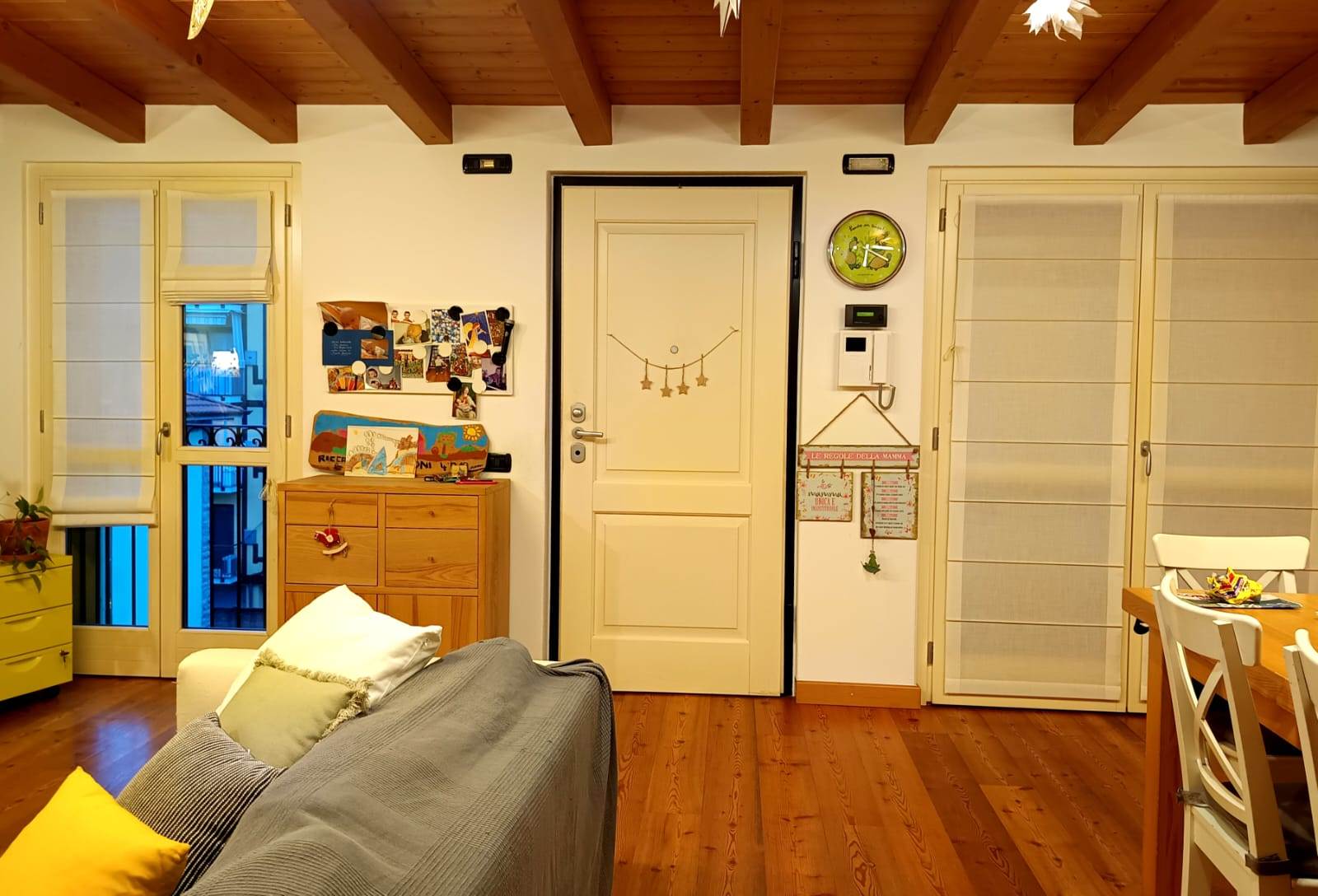 FINITURE: Travi a vista, pavimentazione in parquet bagni in ceramica, serramenti in doppio vetro e legno.