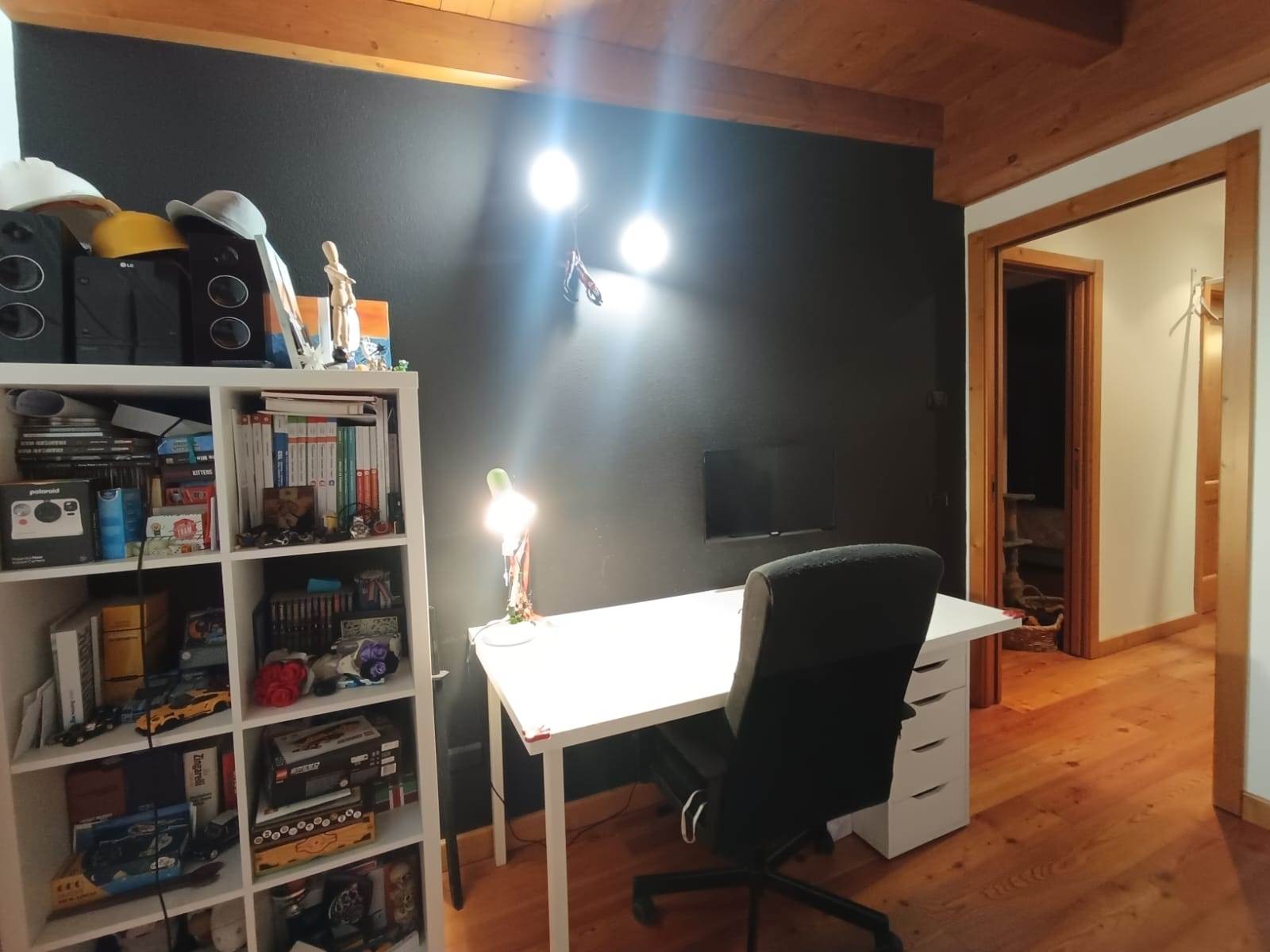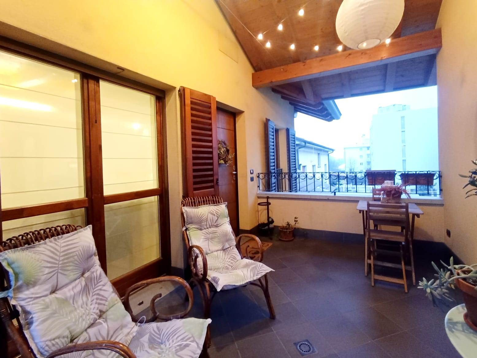 L’ appartamento di 101 mq si compone di: soggiorno con angolo cottura, bagno con doccia, disimpegno notte, 1 camera matrimoniale con cabina armadio, 1 camera singola, 1 studio con ampio lucernario in quota che potrebbe essere adibito a camera singola o cabina armadio, 1 bagno con vasca. L' appartamento dispone di un loggiato all' ingresso ad uso esclusivo.