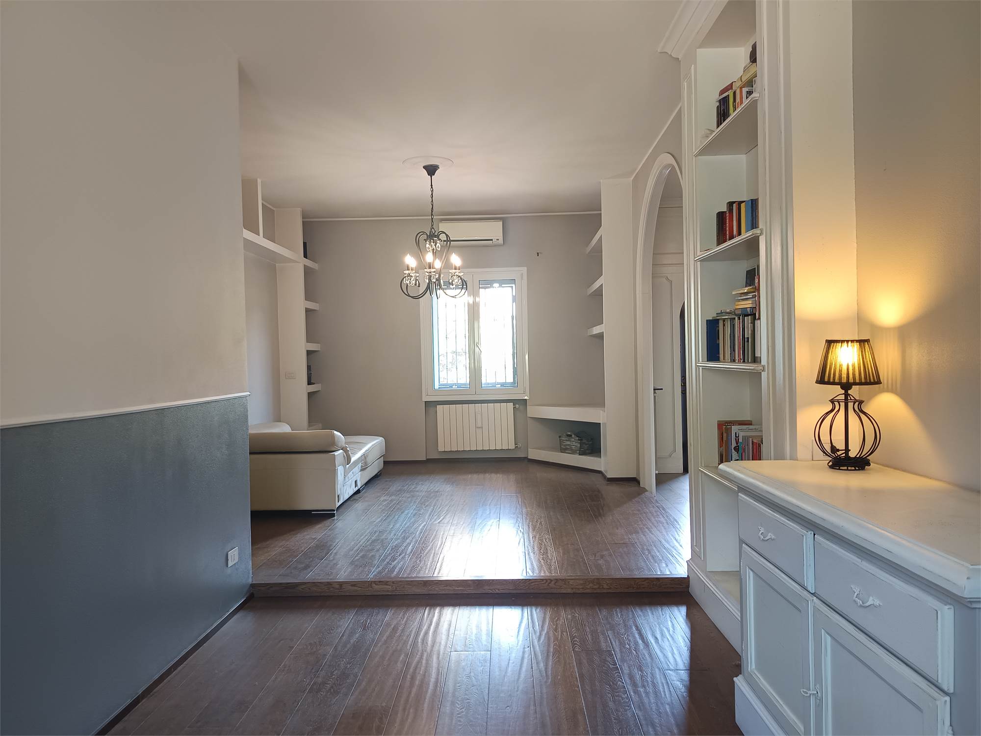 COMPOSIZIONE: Ingresso, soggiorno doppio, ampia cucina abitabile, camera matrimoniale con cabina armadio e balcone, disimpegno e bagno.