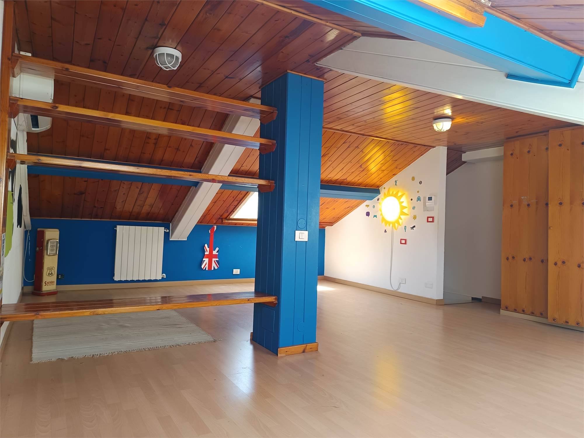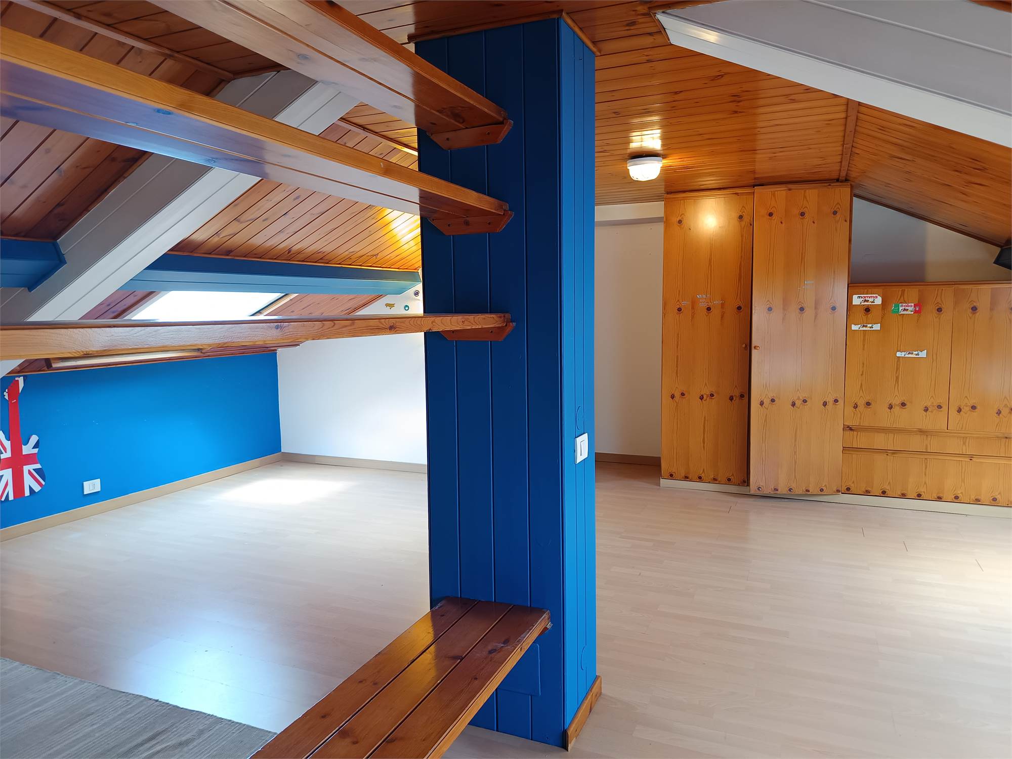 Al piano superiore, si sviluppa la zona mansardata raggiungibile con una comoda scala dove troviamo un locale open space ( con metratura adatta alla realizzazione di due camere ) con ripostiglio e bagno.