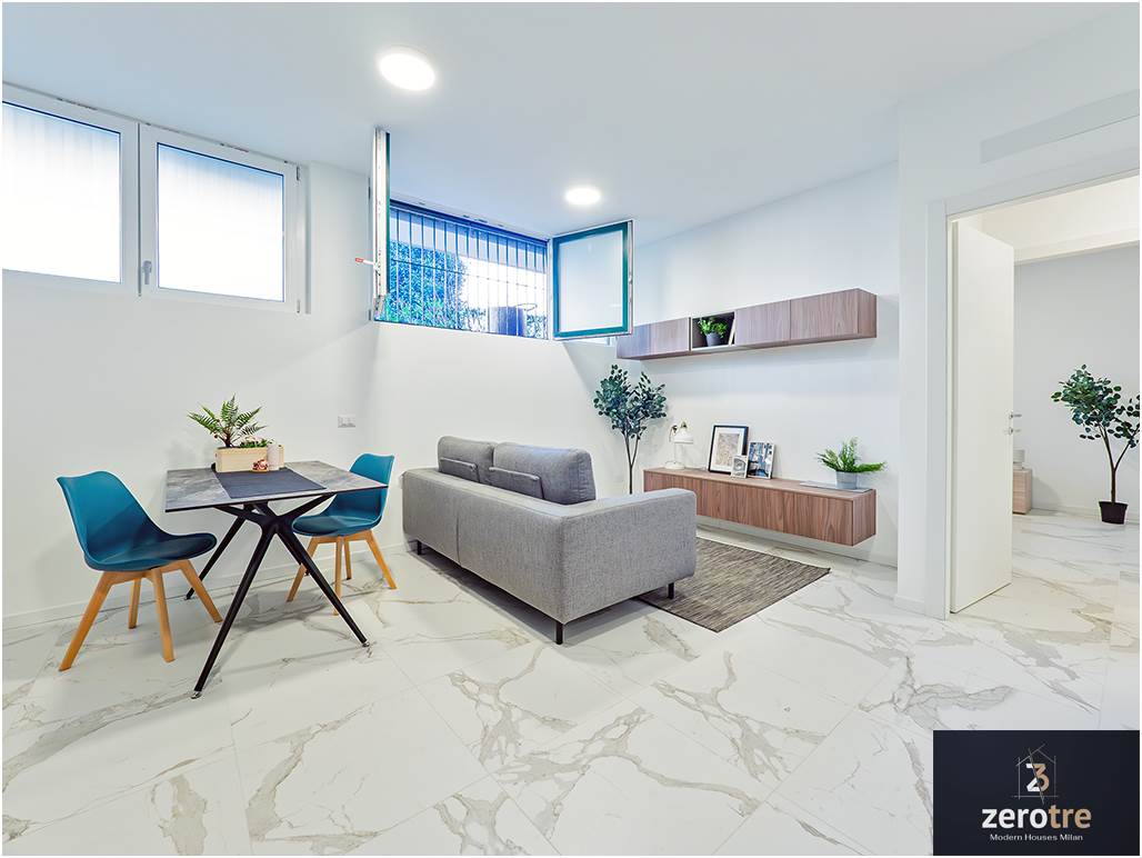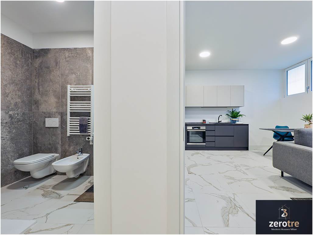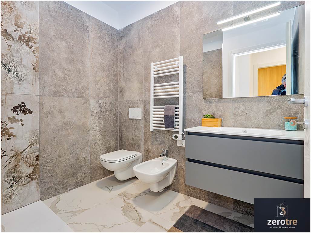 MATERIALI E FINITURE: Pavimentazione in gres porcellanato, serramenti in pvc con doppio vetro isolante, sanitari sospesi, termo arredo nel bagno.