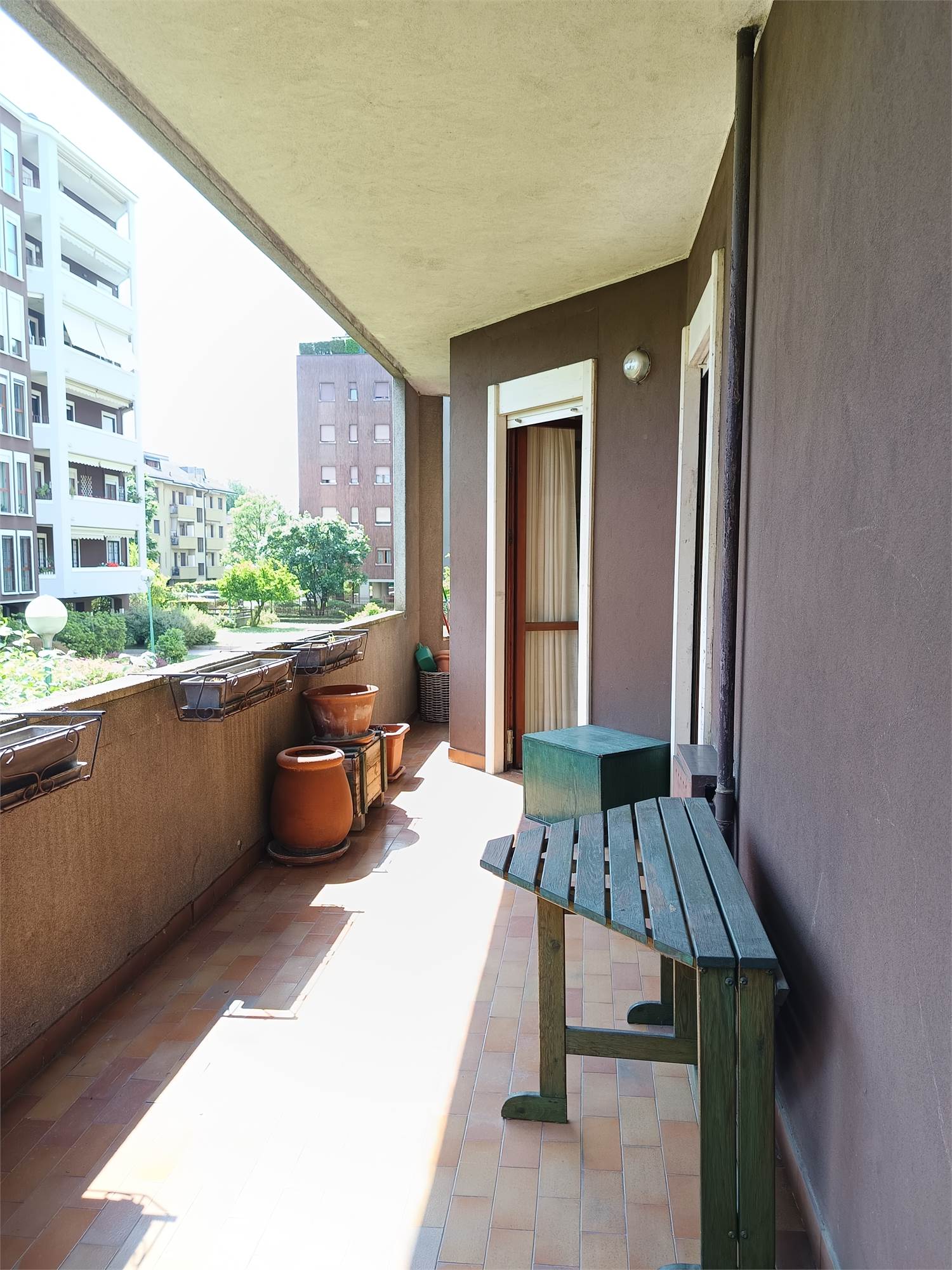 L' appartamento si compone di: Ingresso, ampio soggiorno con accesso al terrazzo coperto affacciato su bellissimo giardino condominiale, cucina abitabile, disimpegno notte, bagno con vasca, ripostiglio e camera da letto matrimoniale, oltre locale uso cantina l piano S1.