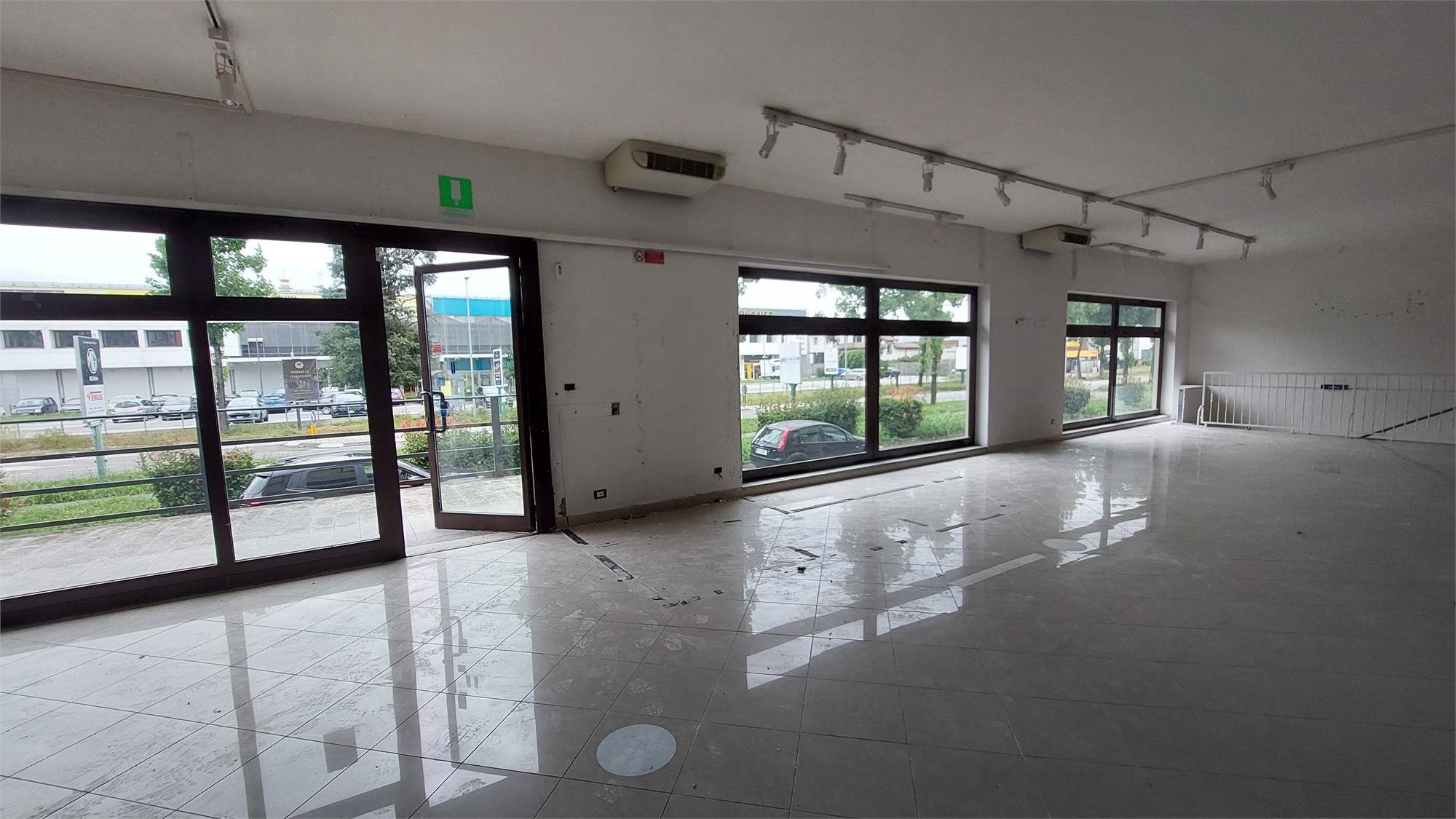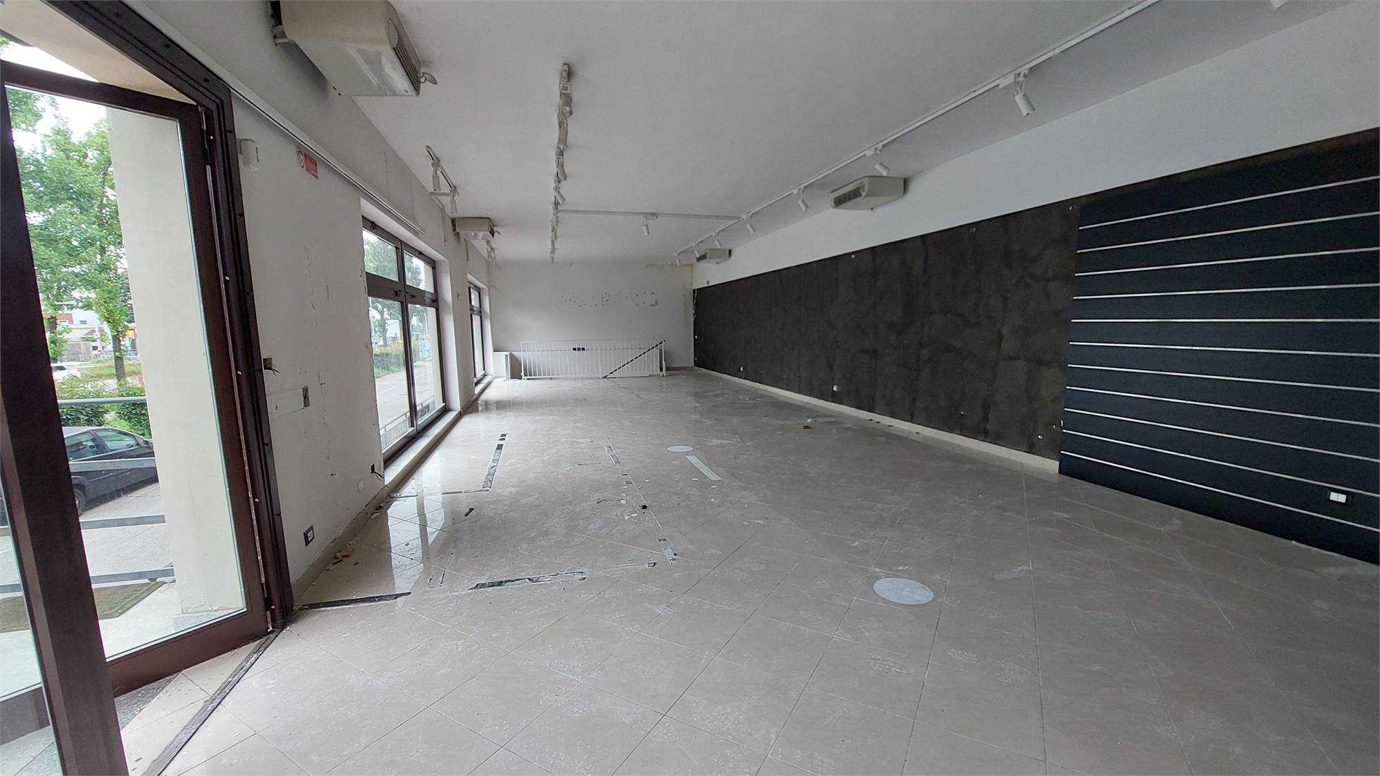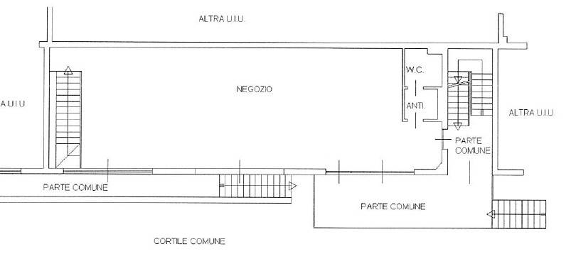 COMPOSIZIONE: Locale commerciale con ampie vetrate fronte strada, composto da: Ingresso, locale open space, bagno, oltre al piano S1 con permanenza di persone, collegato internamente, diviso in due vani e dotato di doppi bagni. Cortile di proprietà esclusiva fronte negozio per parcheggio auto.