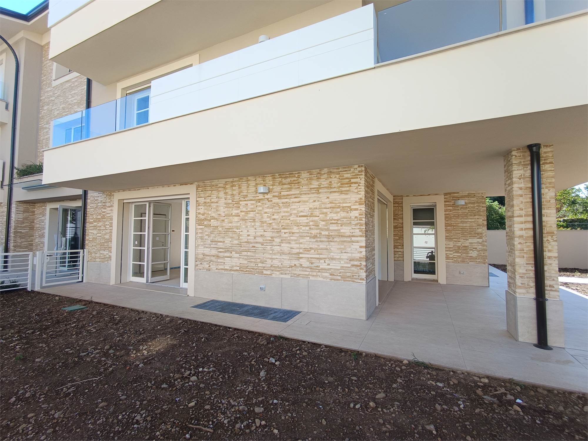Proponiamo appartamento 3 LOCALI, piano TERRA con GIARDINO, composto da: Ingresso, soggiorno, cucina abitabile, accesso all'ampio loggiato coperto di mq. 40 circa e al giardino di mq.165, disimpegno notte, 2 camere da letto, doppi servizi finestrati. Completo di locale uso cantina al piano S1. Possibilità di acquisto box doppio al prezzo di Euro 45.000,00.