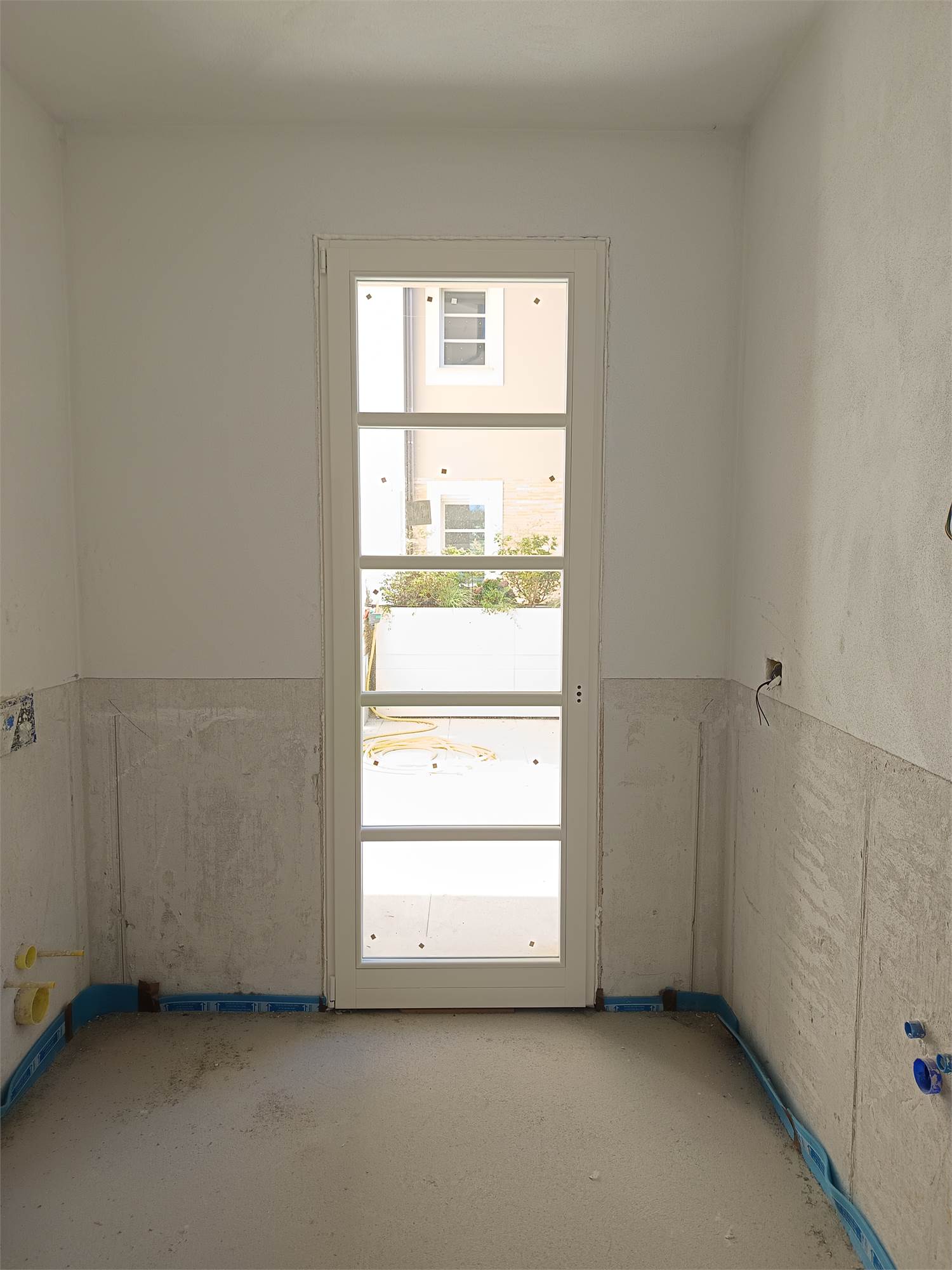 -Serramenti in legno laccato bianco, con doppio vetro isolante.