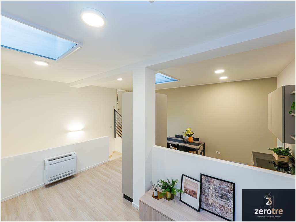 Infissi termo isolanti in PVC, Impianto di riscaldamento e raffrescamento autonomi con pompa di calore, pavimentazione in gres porcellanato, sanitari sospesi, doccia walk in, termo arredo nei bagni.
