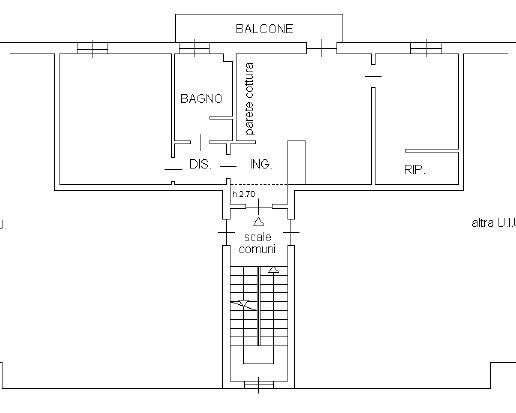 L’ appartamento si compone di: Ingresso, soggiorno con cucina a vista e balcone, disimpegno bagno con vasca, 2 ampie camere da letto,