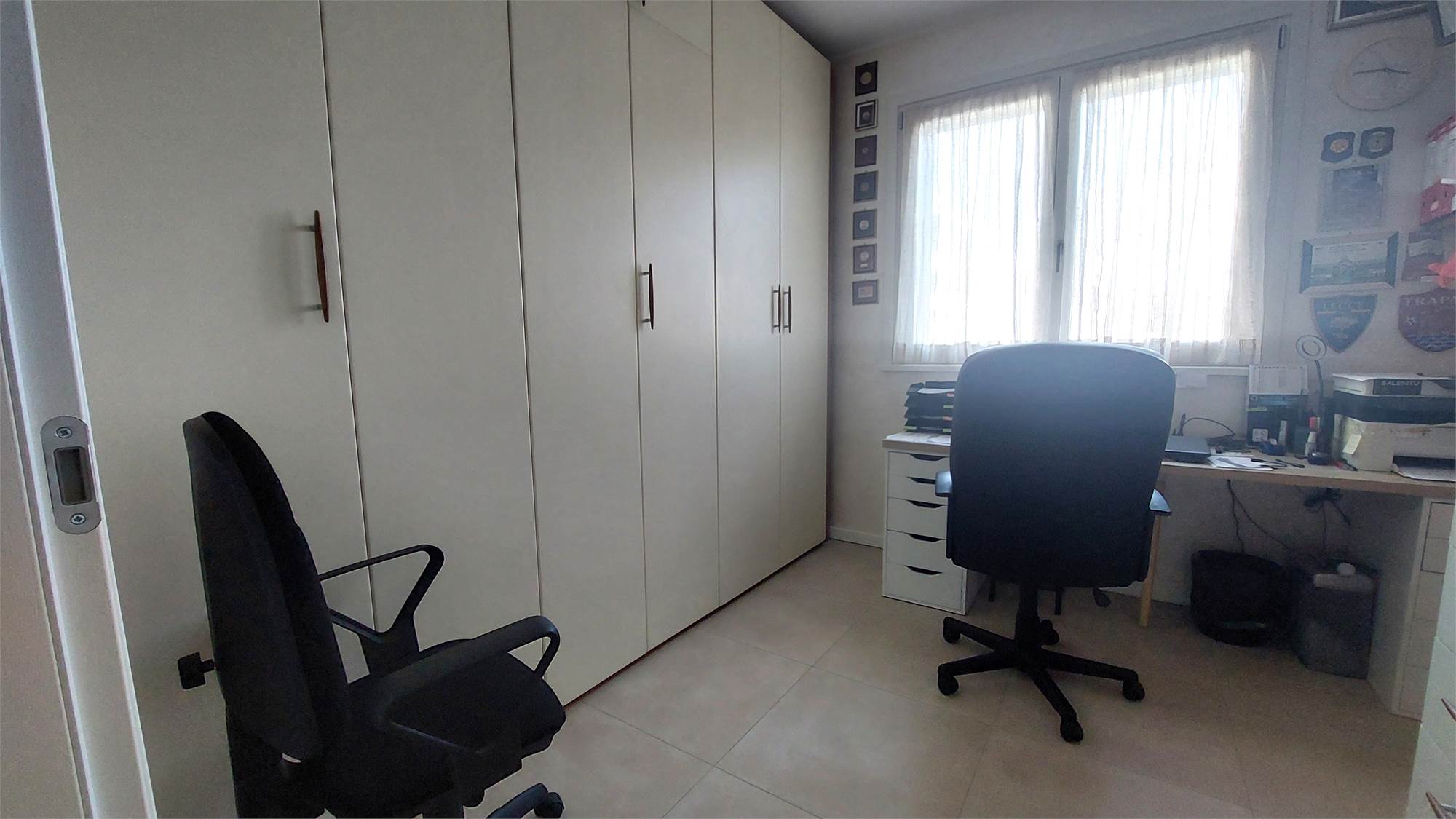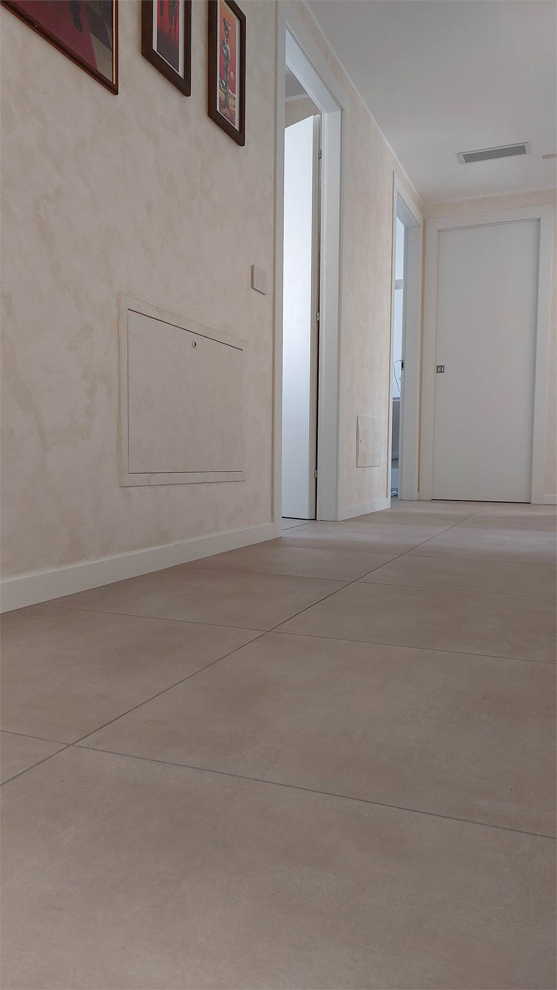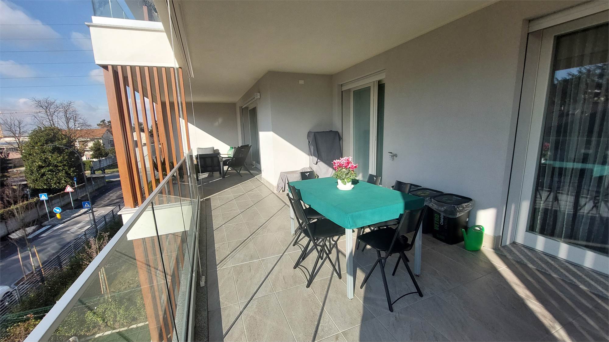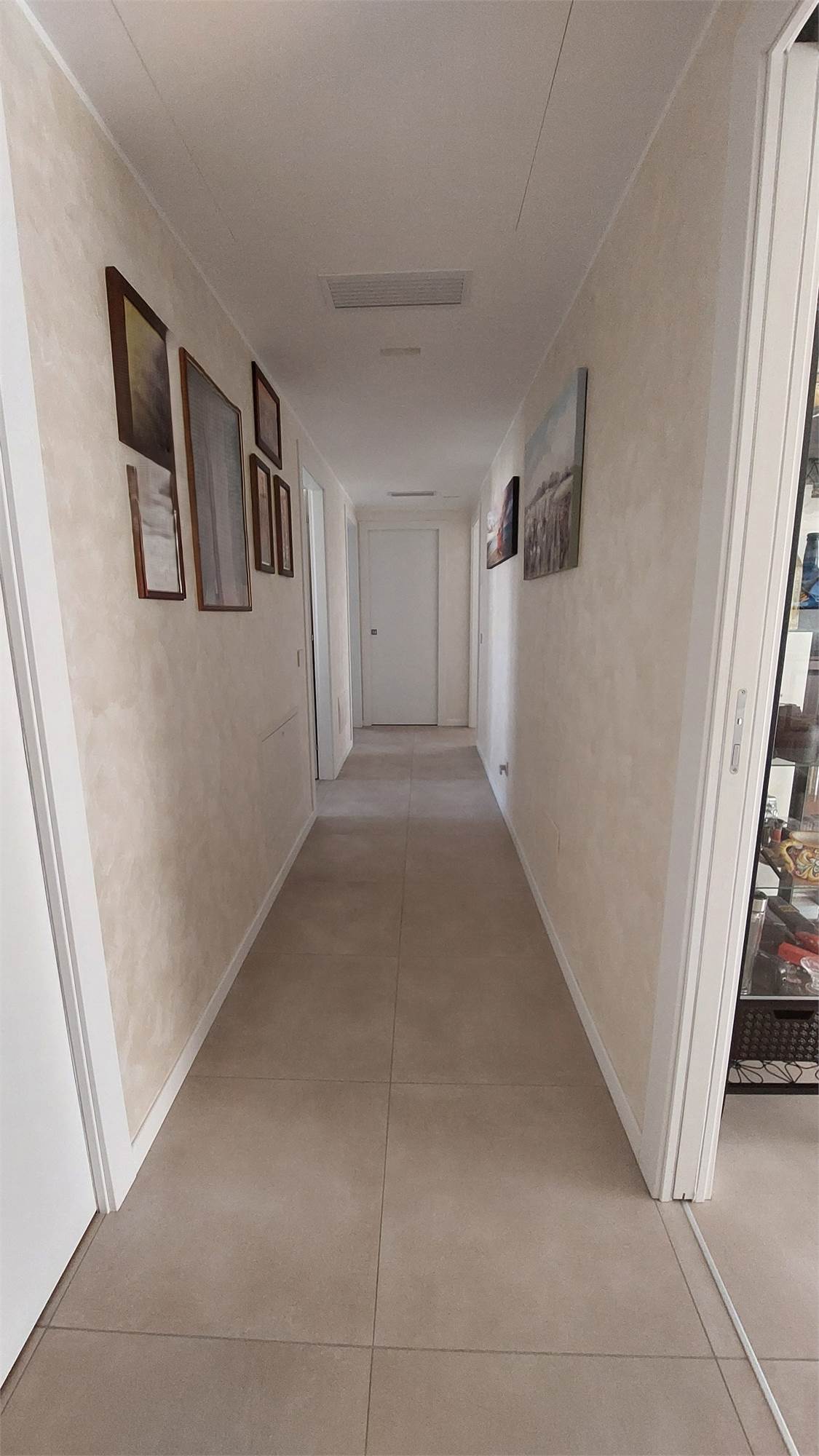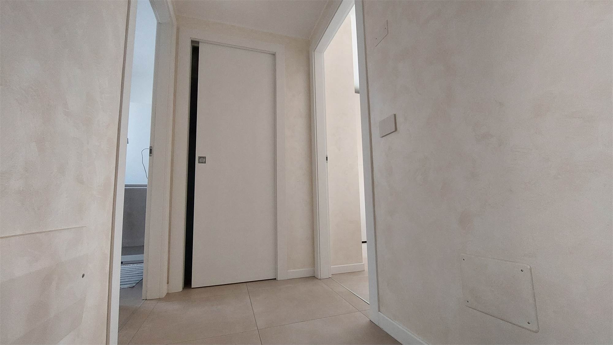 L’ appartamento si compone di: Ingresso, ampio soggiorno con affaccio sul terrazzo coperto, cucina abitabile, disimpegno notte, 2 camere matrimoniali, camera singola, doppi servizi con doccia, entrambi finestrati.