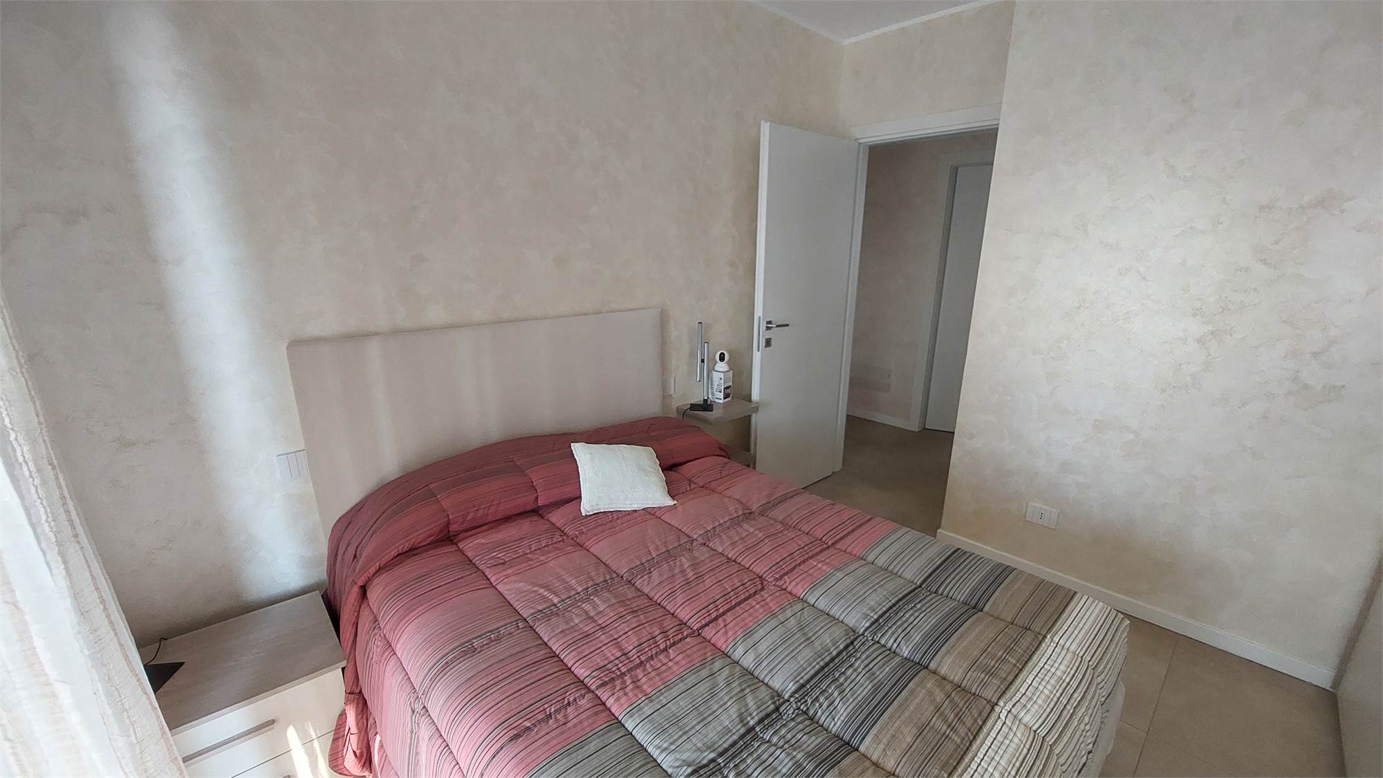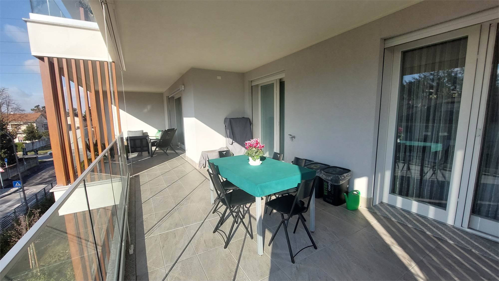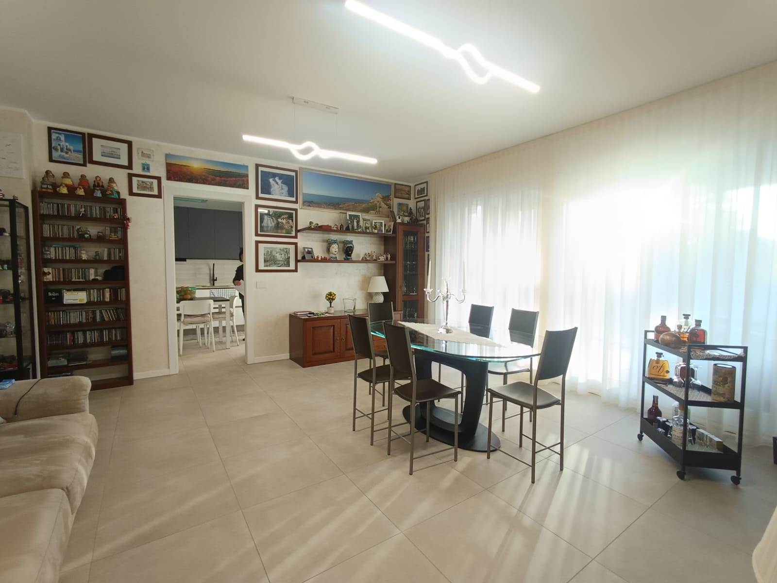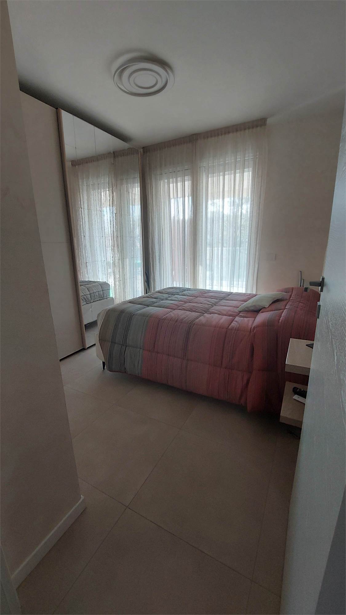 L’ appartamento si compone di: Ingresso, ampio soggiorno con affaccio sul terrazzo coperto, cucina abitabile, disimpegno notte, 2 camere matrimoniali, camera singola, doppi servizi con doccia, entrambi finestrati.