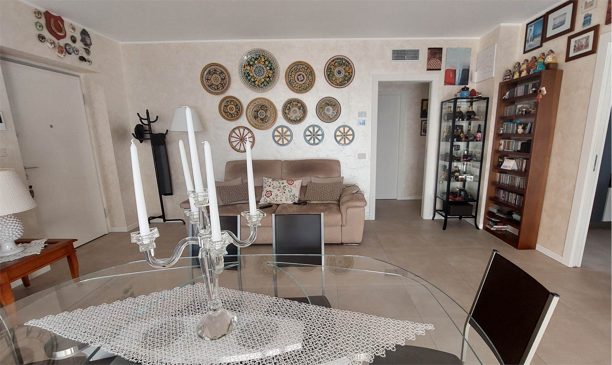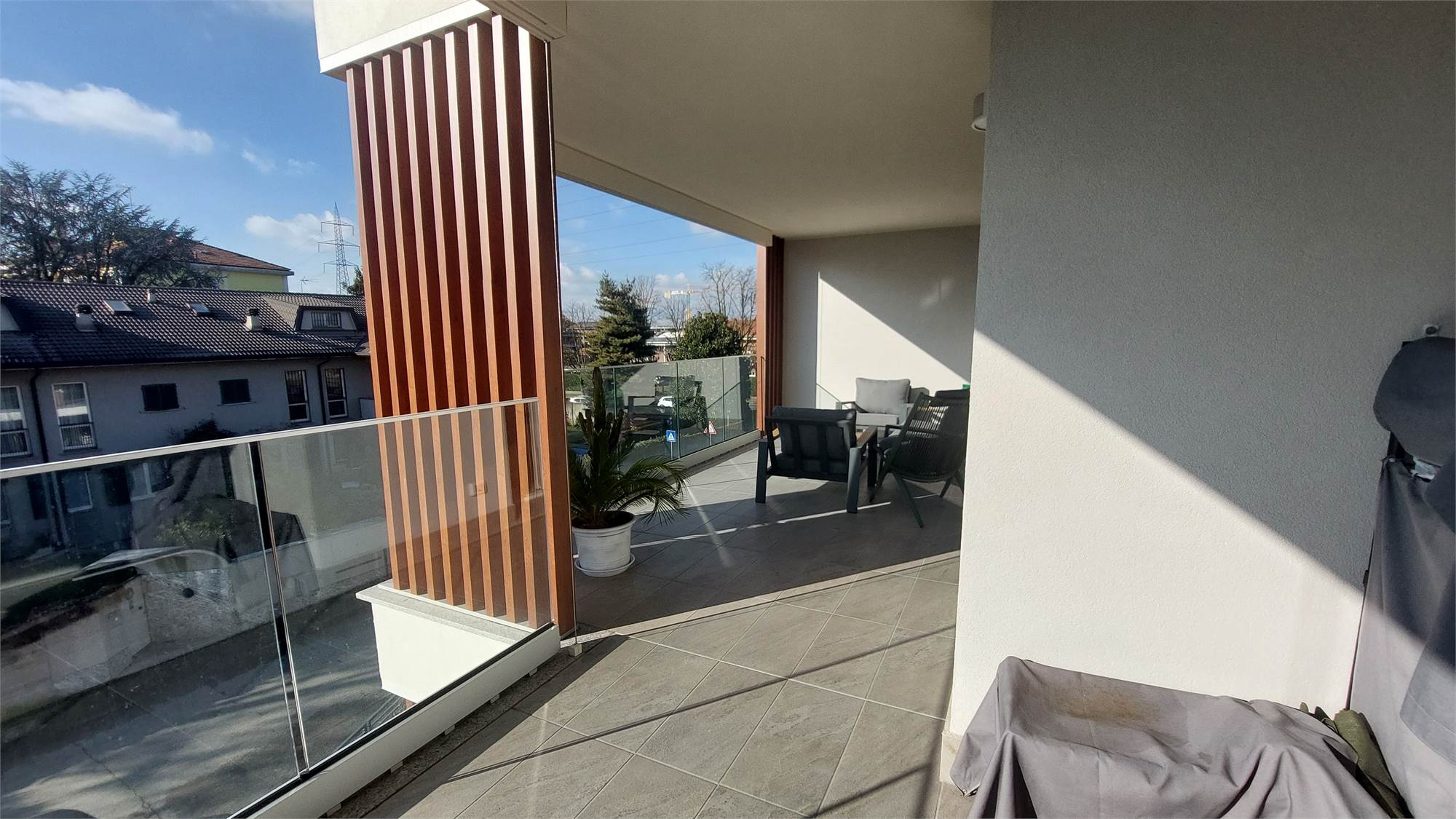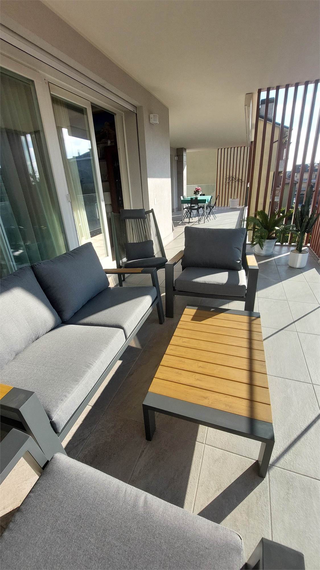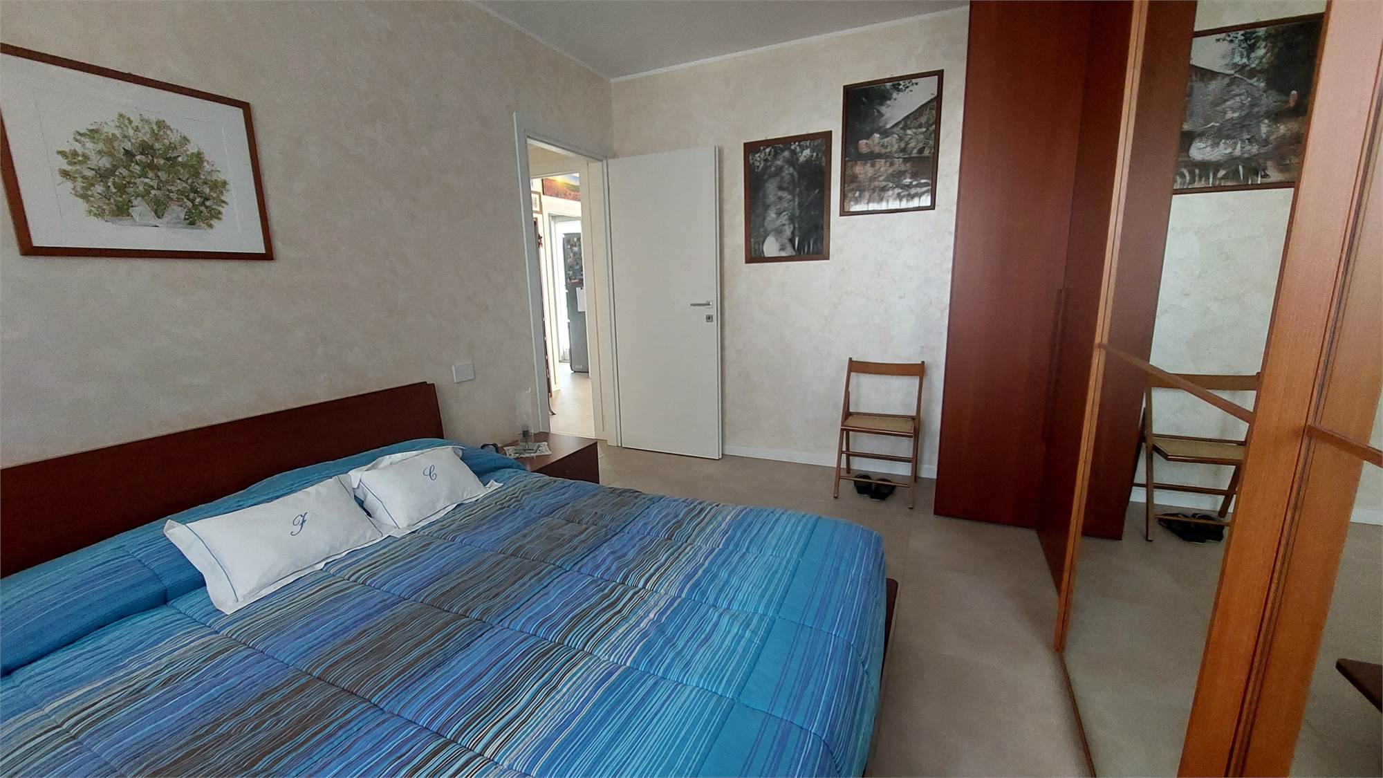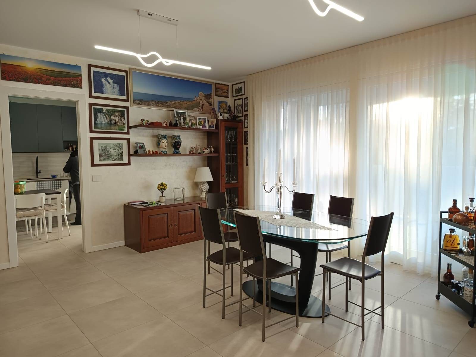 L’ appartamento si compone di: Ingresso, ampio soggiorno con affaccio sul terrazzo coperto, cucina abitabile, disimpegno notte, 2 camere matrimoniali, camera singola, doppi servizi con doccia, entrambi finestrati.