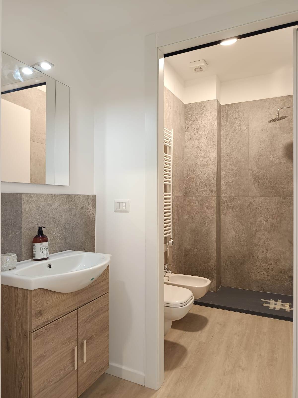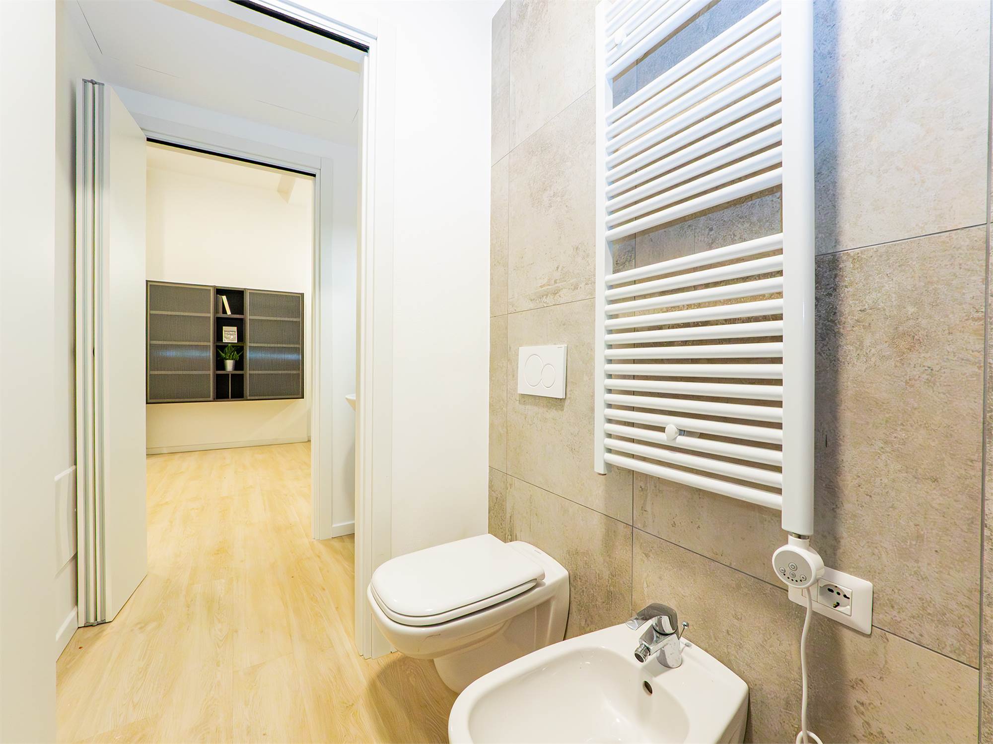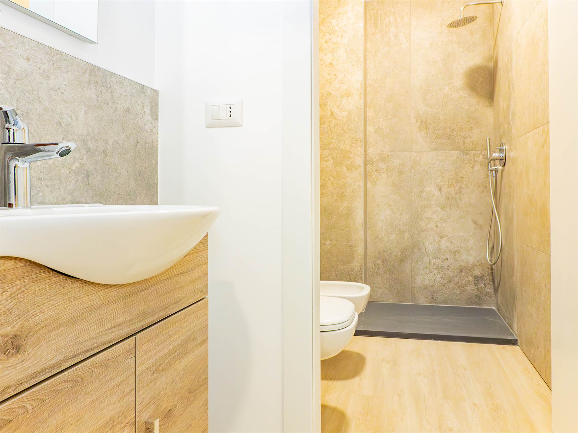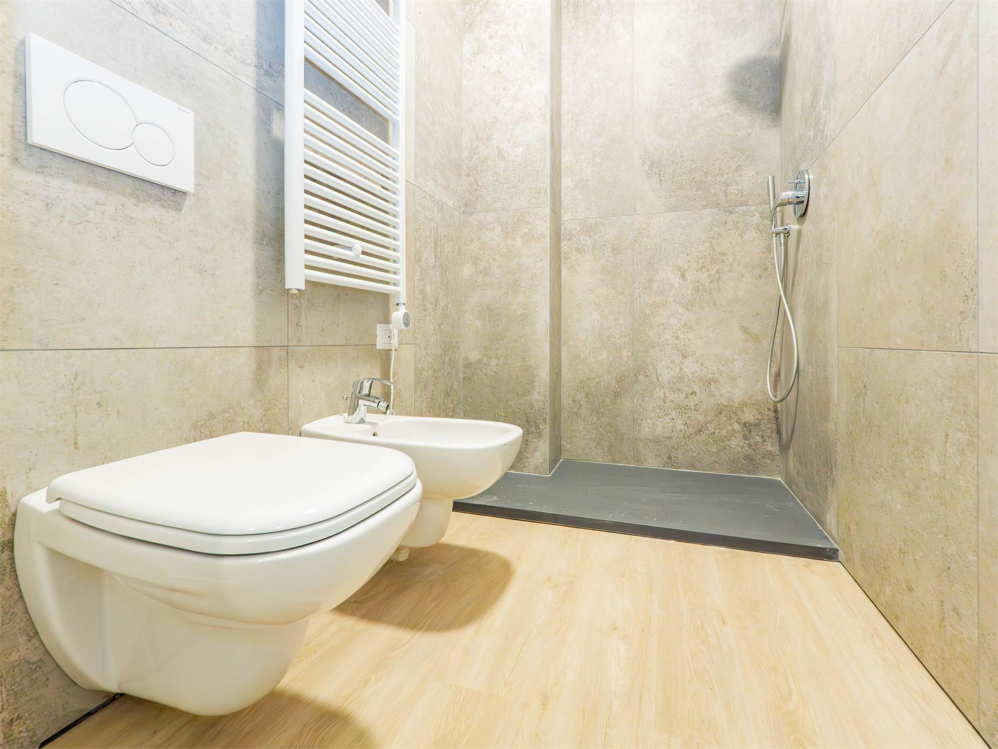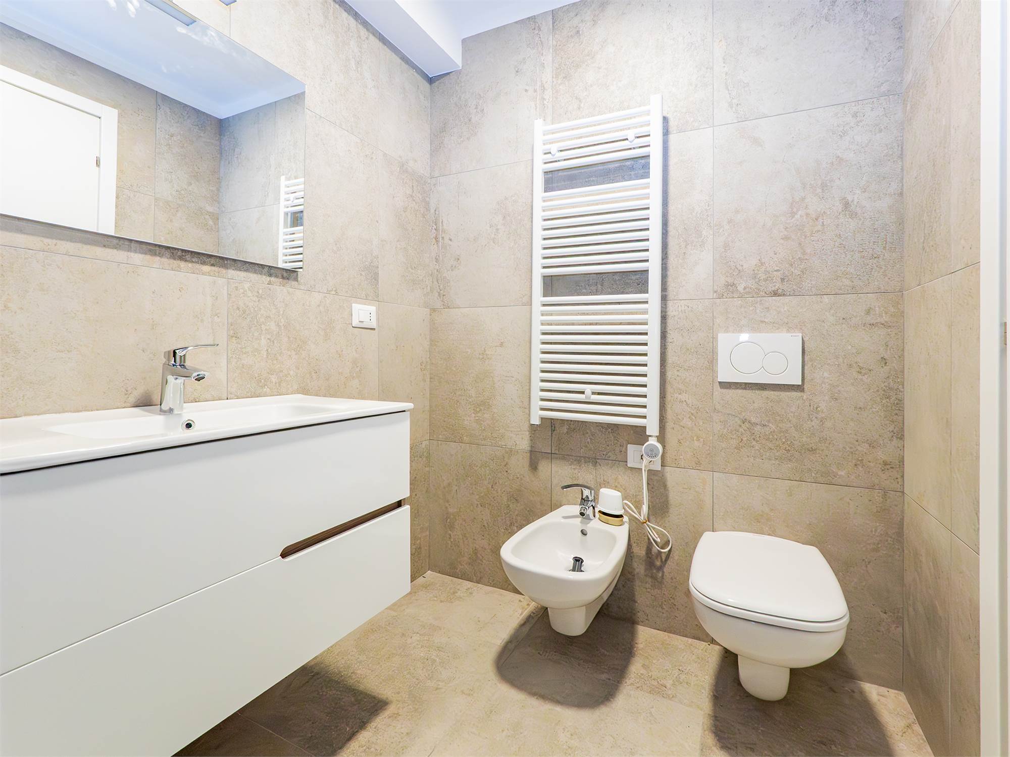 CARATTERISTICHE E FINITURE: Infissi termo isolanti in PVC, Impianto di riscaldamento e raffrescamento autonomi con pompa di calore, pavimentazione in gres porcellanato, sanitari sospesi, doccia walk in, termo arredo nei bagni.