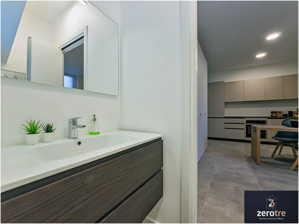 FINITURE: Pavimentazione in gres porcellanato, serramenti in PVC con doppio vetro isolante, doccia walk in, sanitari sospesi, termo arredo nel bagno