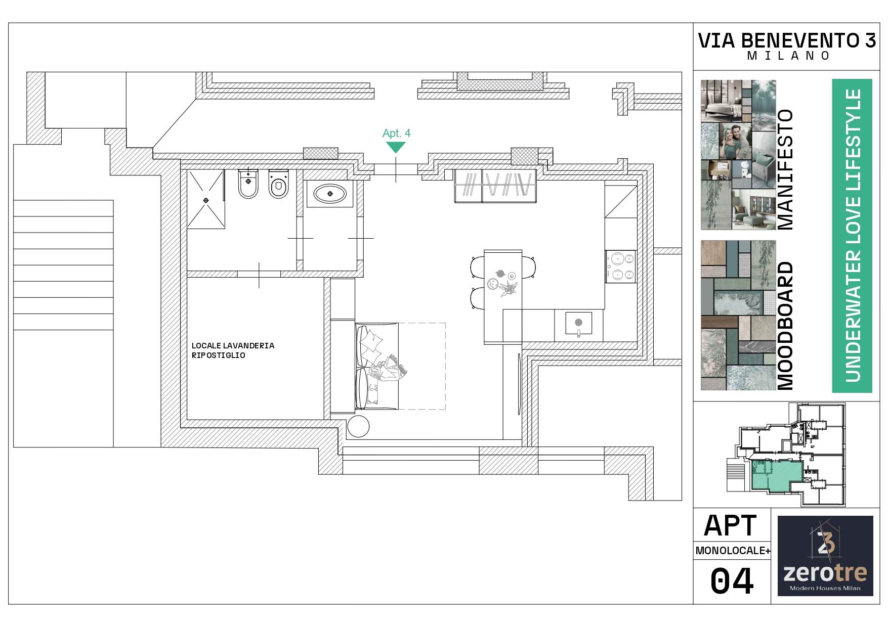 L'appartamento in vendita si compone di: Ingresso, ampia zona soggiorno/notte, bagno con doccia walk in, ripostiglio lavanderia.