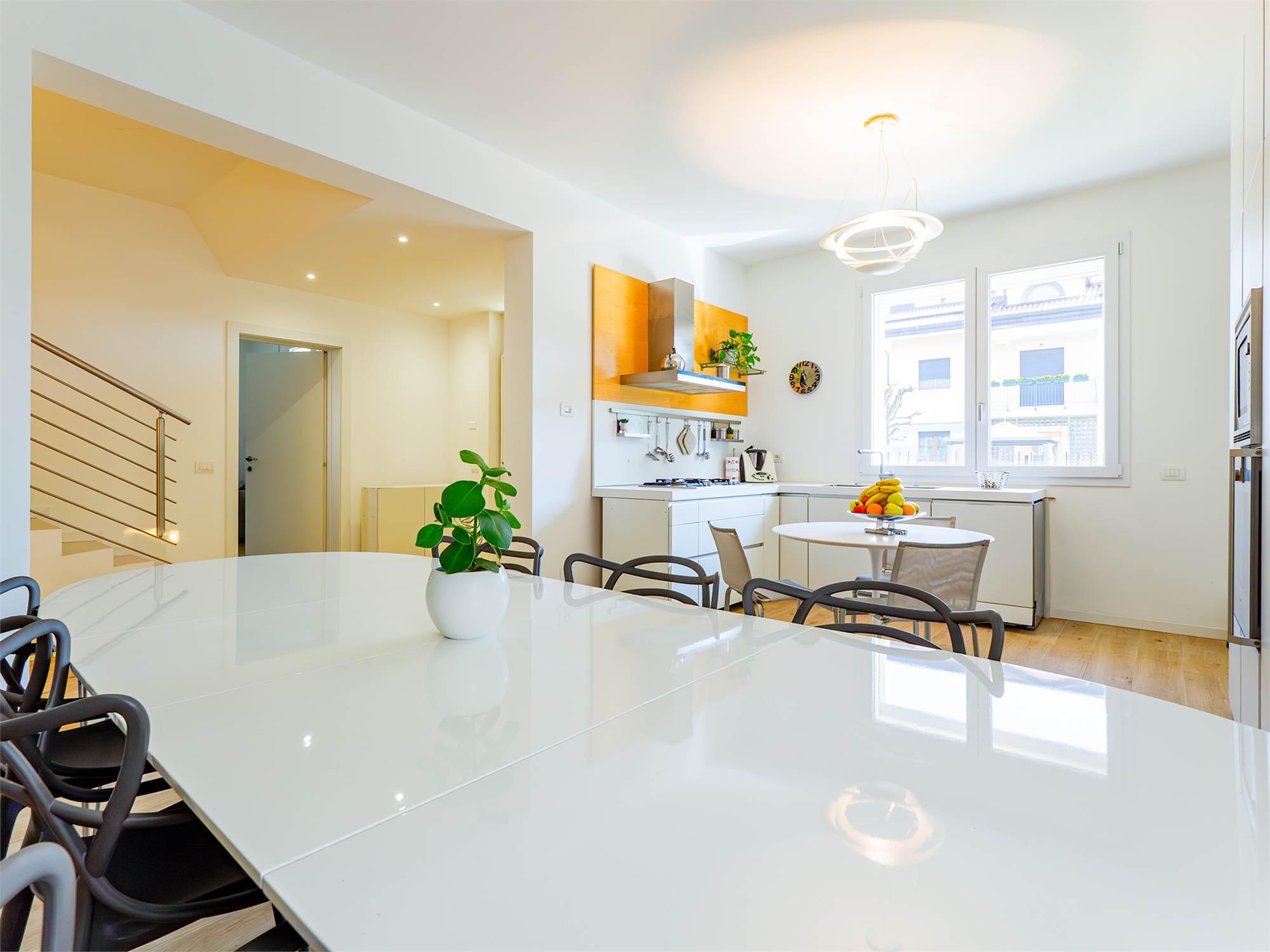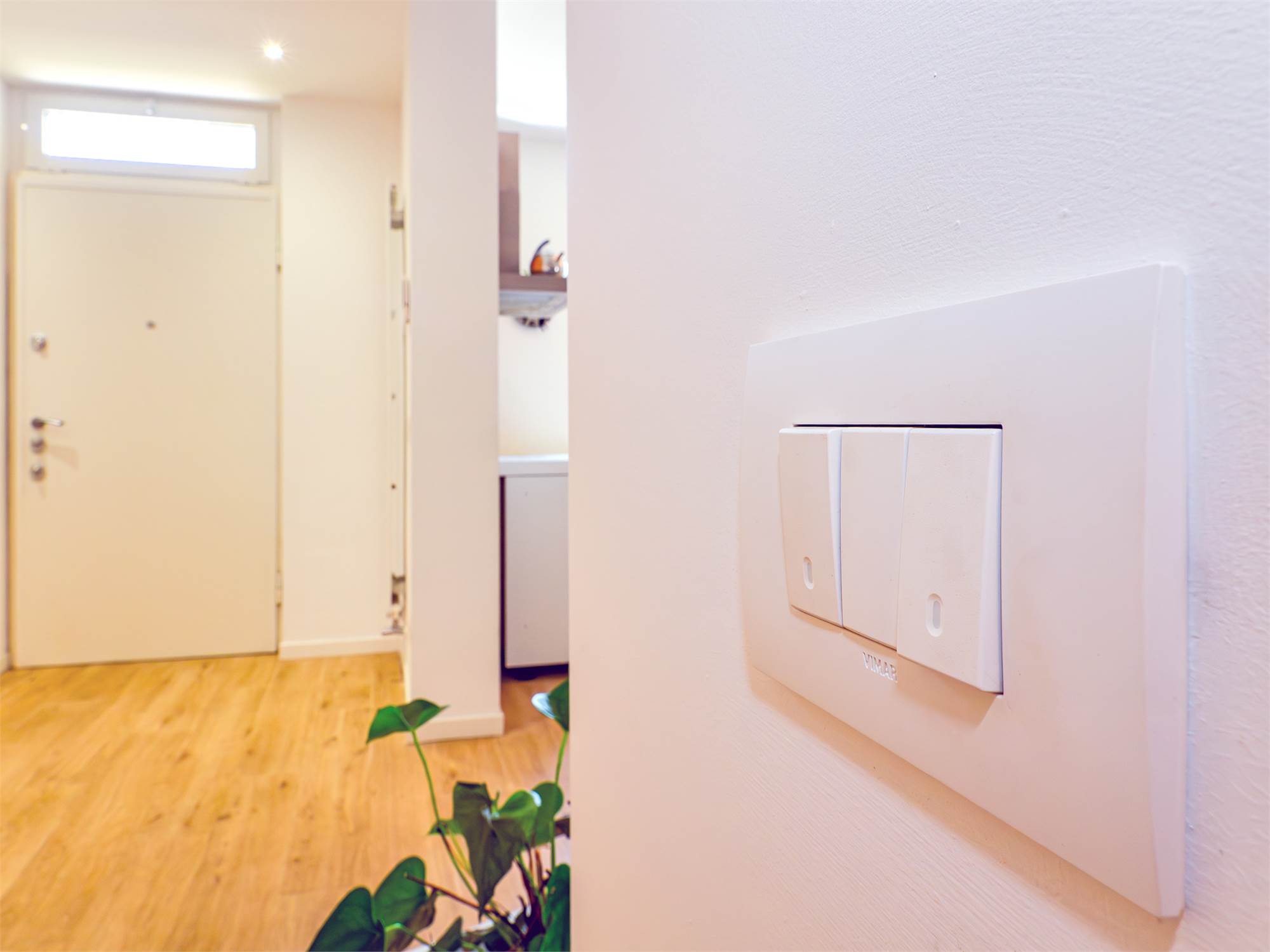 Pavimentazione in gres porcellanato, serramenti isolanti con doppio vetro, sanitari sospesi, termo arredo nei bagni, doccia walk in, tapparelle motorizzate. Il videocitofono e' disponibile su tutti e tre i piani.